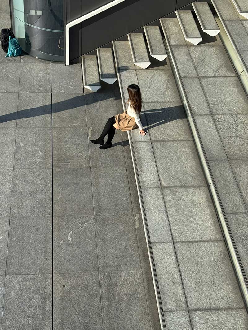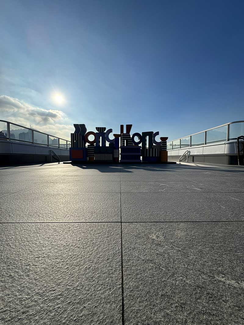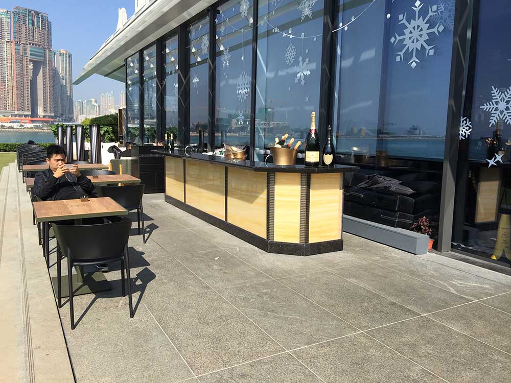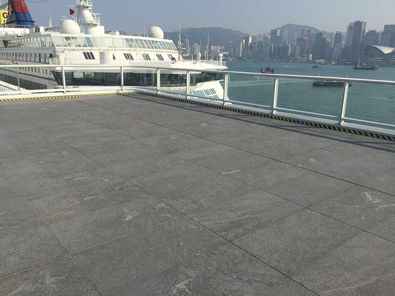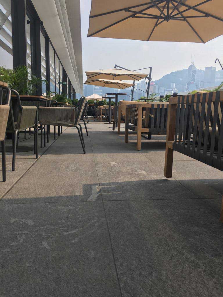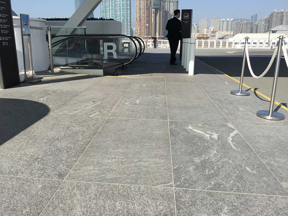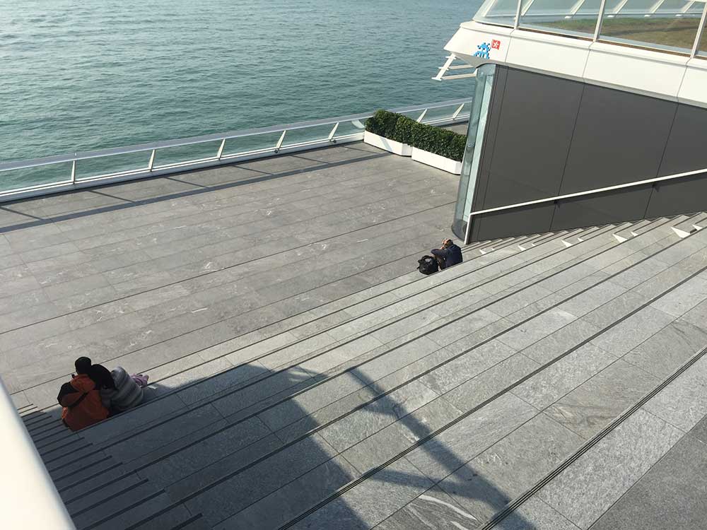 Die ganze Außenfläche ist ungefähr 7000 m2 groß und wurde mit gesintertem Stein L’Altra Pietra Colosseo Grigioni 60x120x2 cm.