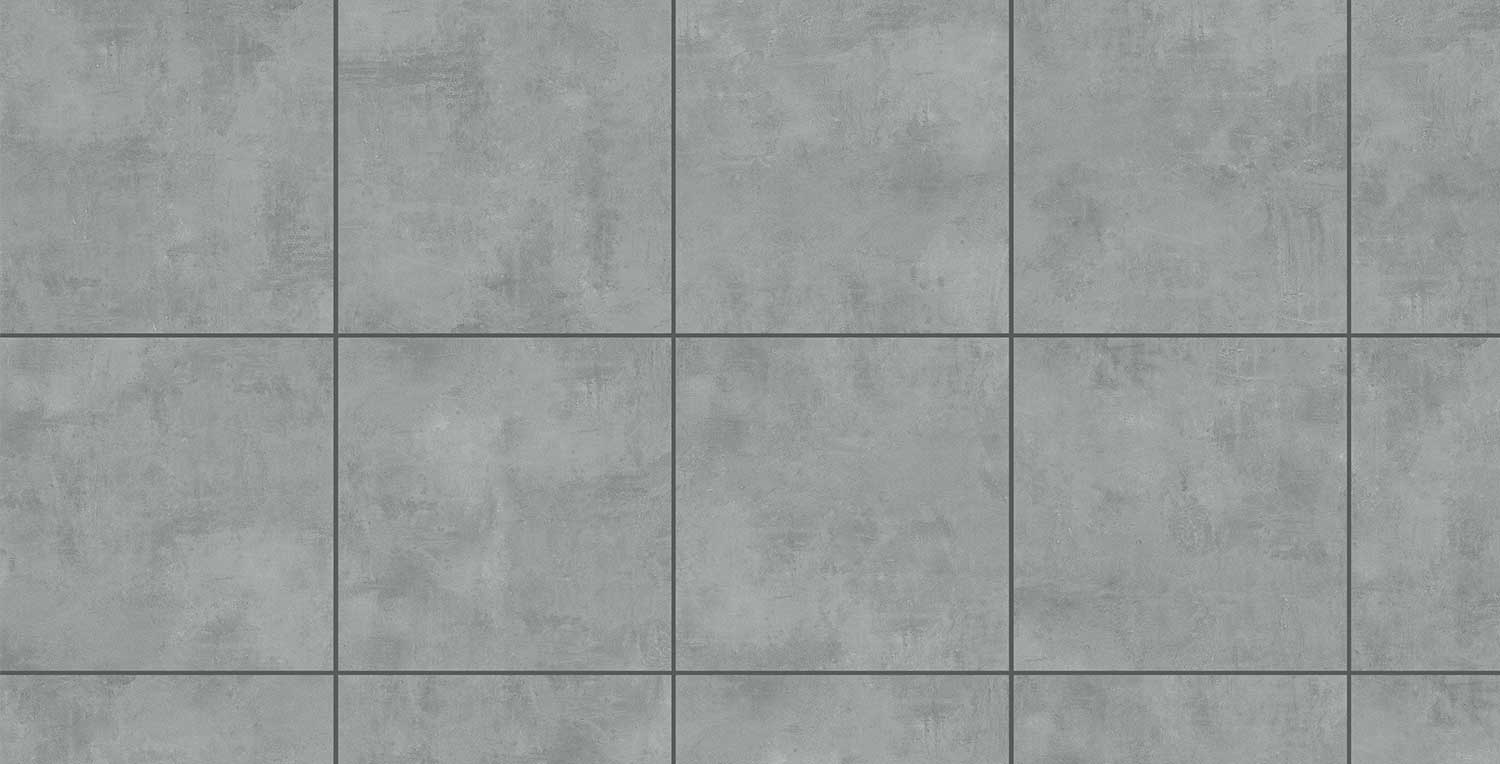 Die Farbstruktur basiert auf einem mittleren Grau, das durch eine Bandbreite von Nuancen von Aschgrau über Graphit bis hin zu leichten Bleitönen durchzogen ist. Die Farbintensität variiert kontrolliert und simuliert die typische Sättigung von feuchtem Beton, wodurch eine tiefere, kompaktere und dynamischere Wirkung entsteht als bei herkömmlichen Oberflächen.