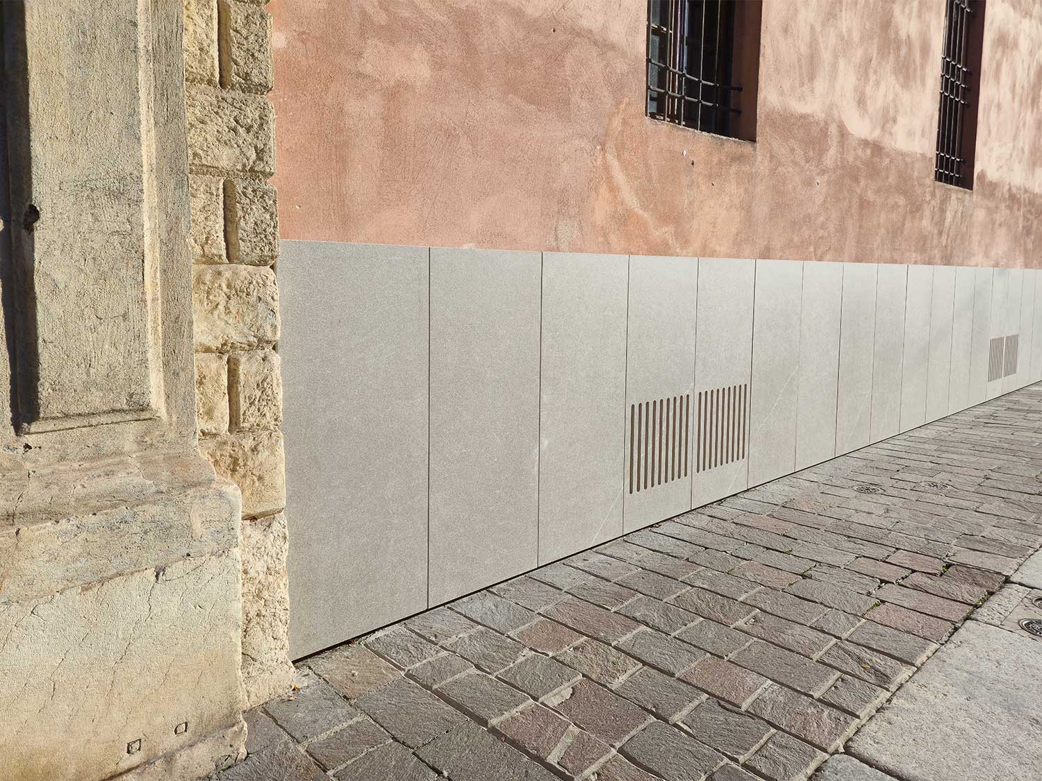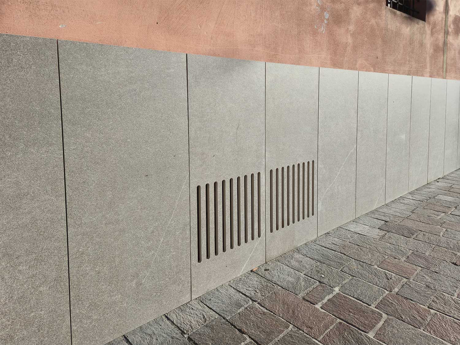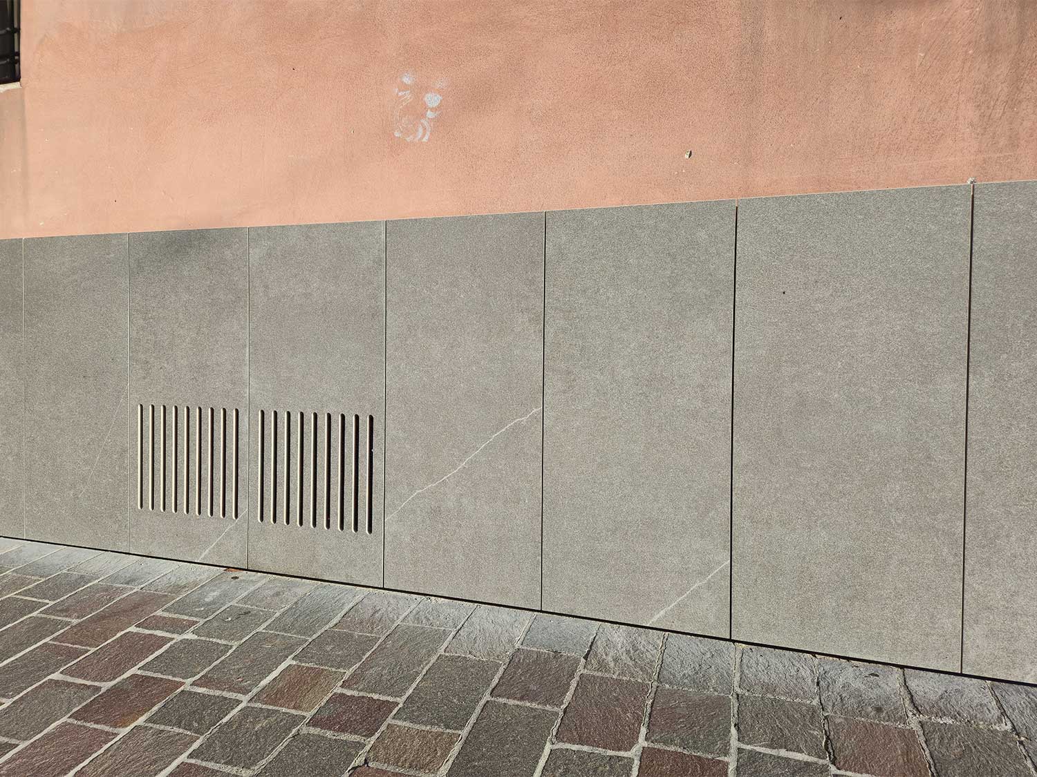 The ventilated façade increases energy efficiency, improves thermal regulation and ensures long-lasting protection. The sintered stone surface offers exceptional resistance to UV rays, humidity, frost, pollution and temperature variations, making it ideal for urban settings and institutional buildings.