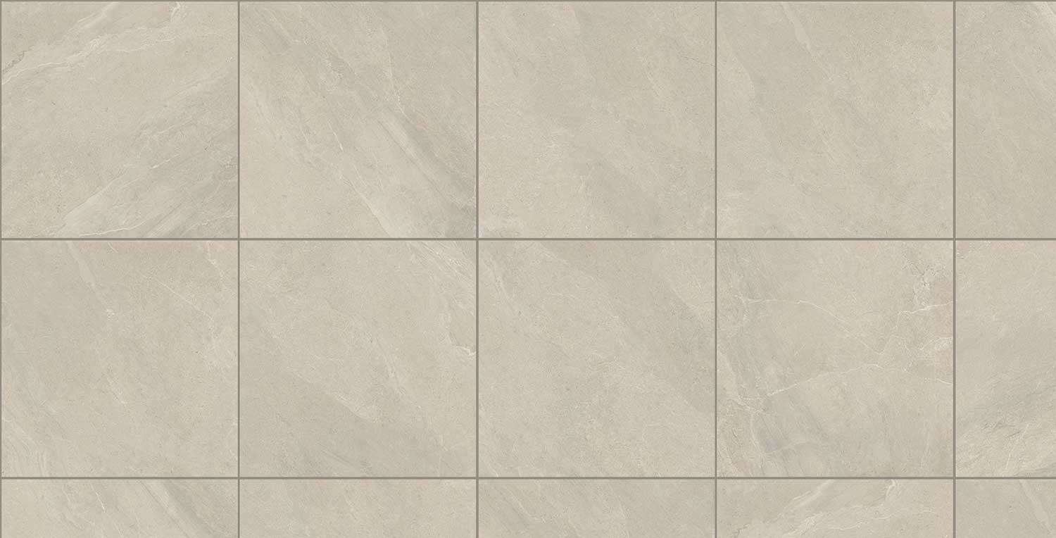 Le sfumature si muovono tra crema, avorio e beige cipriato, attraversate da velature grigio-perla che aggiungono complessità in modo discreto. Le venature sono sottili, fluide e irregolari, simili a filamenti minerali, contribuendo a una superficie equilibrata e architettonicamente stabile.