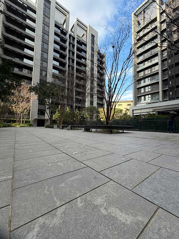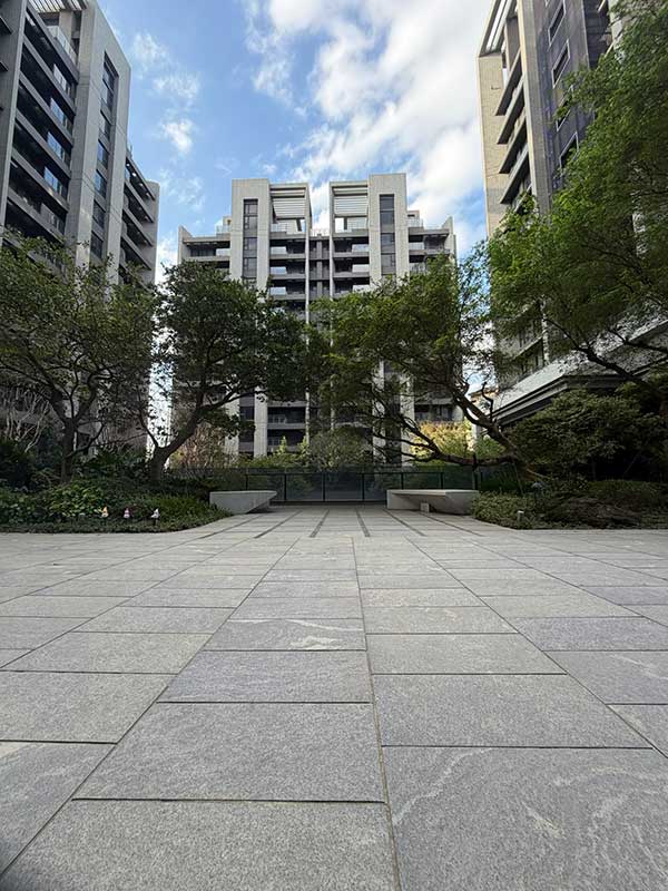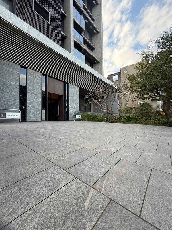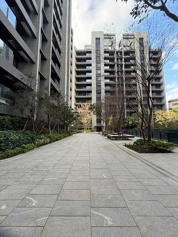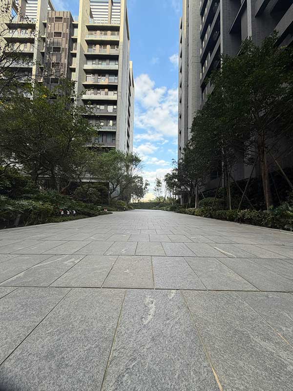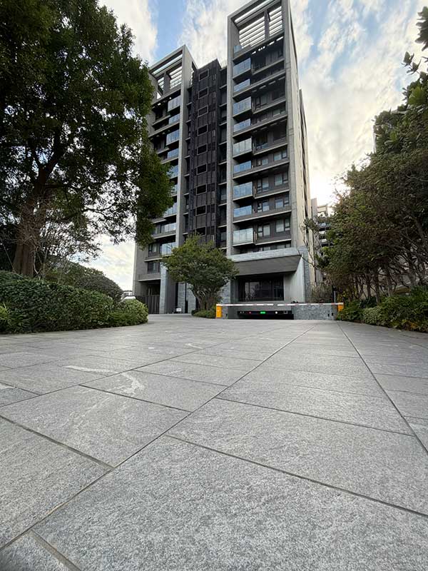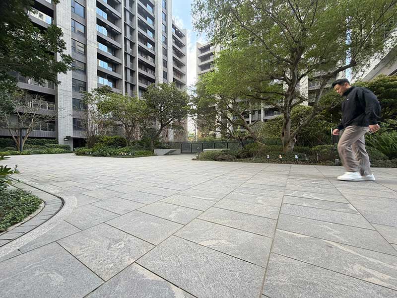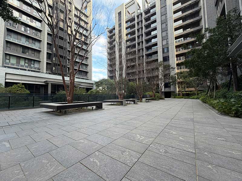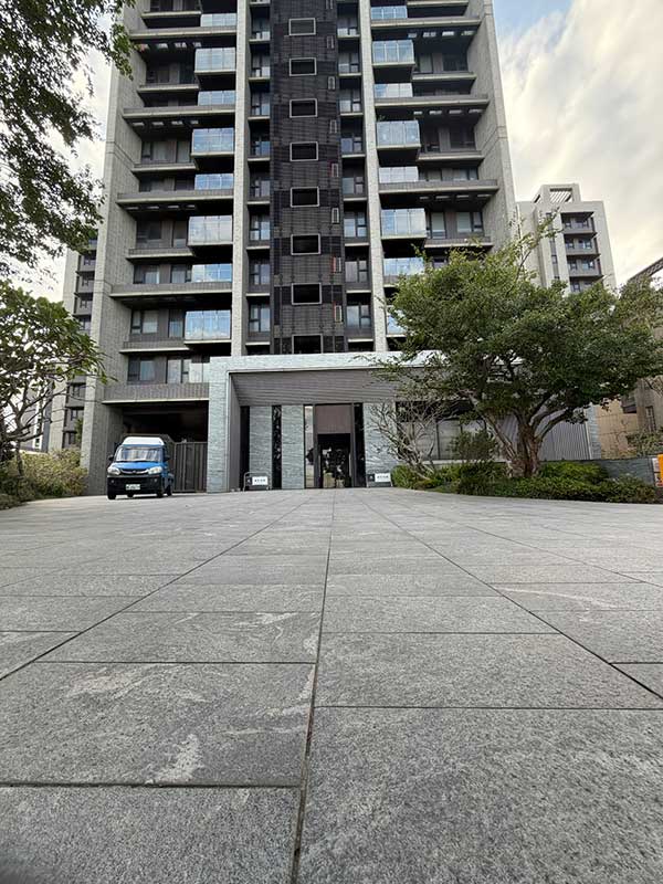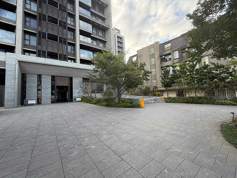 Nel 2025, a Taoyuan in Taiwan, è stata realizzata la pavimentazione esterna in pietra sinterizzata di un complesso residenziale contemporaneo utilizzando L’ALTRA PIETRA 2CM Colosseo Grigioni nei formati 30×60×2 cm, 60×60×2 cm e con elementi lavorati su misura.