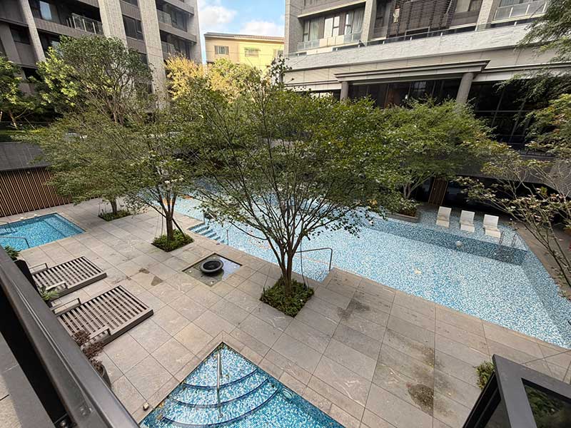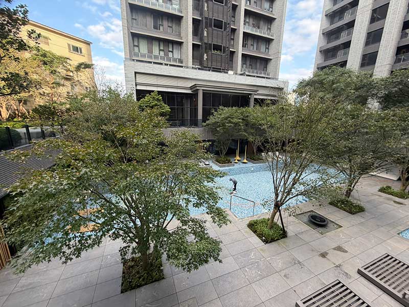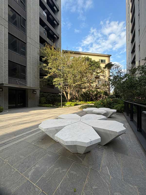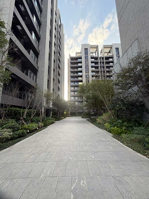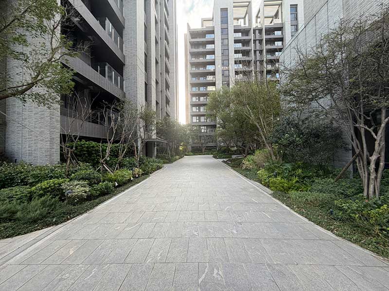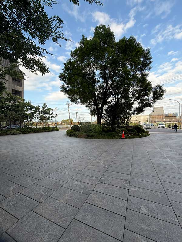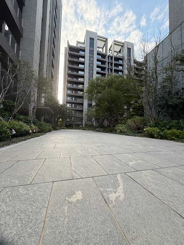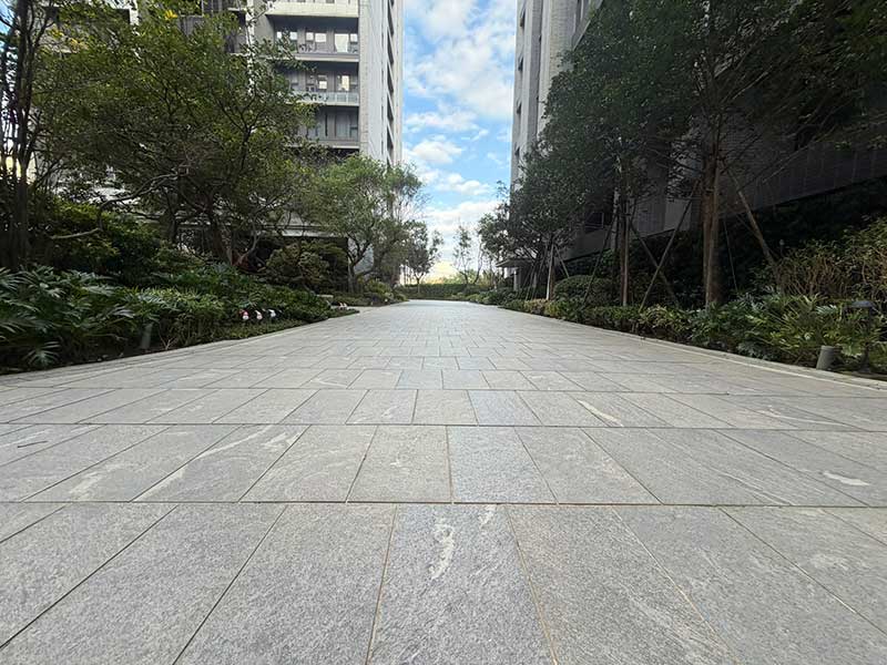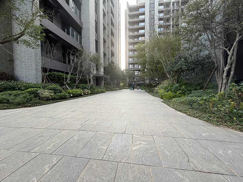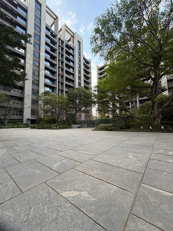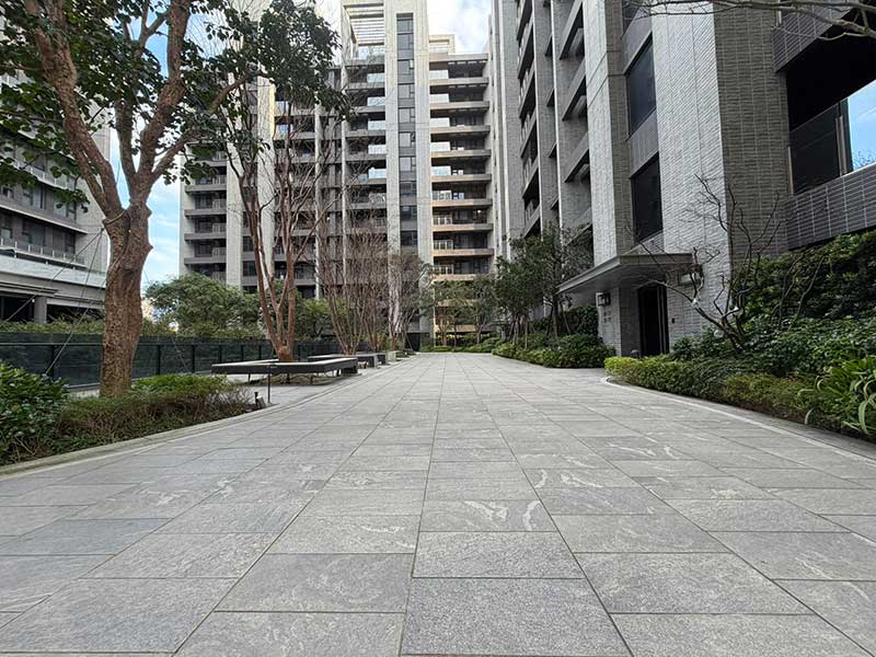 Nel 2025, a Taoyuan in Taiwan, è stata realizzata la pavimentazione esterna in pietra sinterizzata di un complesso residenziale contemporaneo utilizzando L’ALTRA PIETRA 2CM Colosseo Grigioni nei formati 30×60×2 cm, 60×60×2 cm e con elementi lavorati su misura.