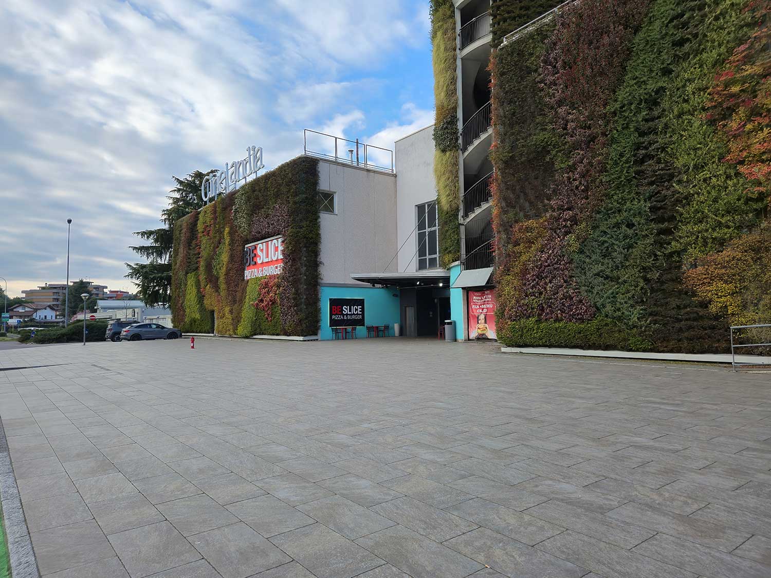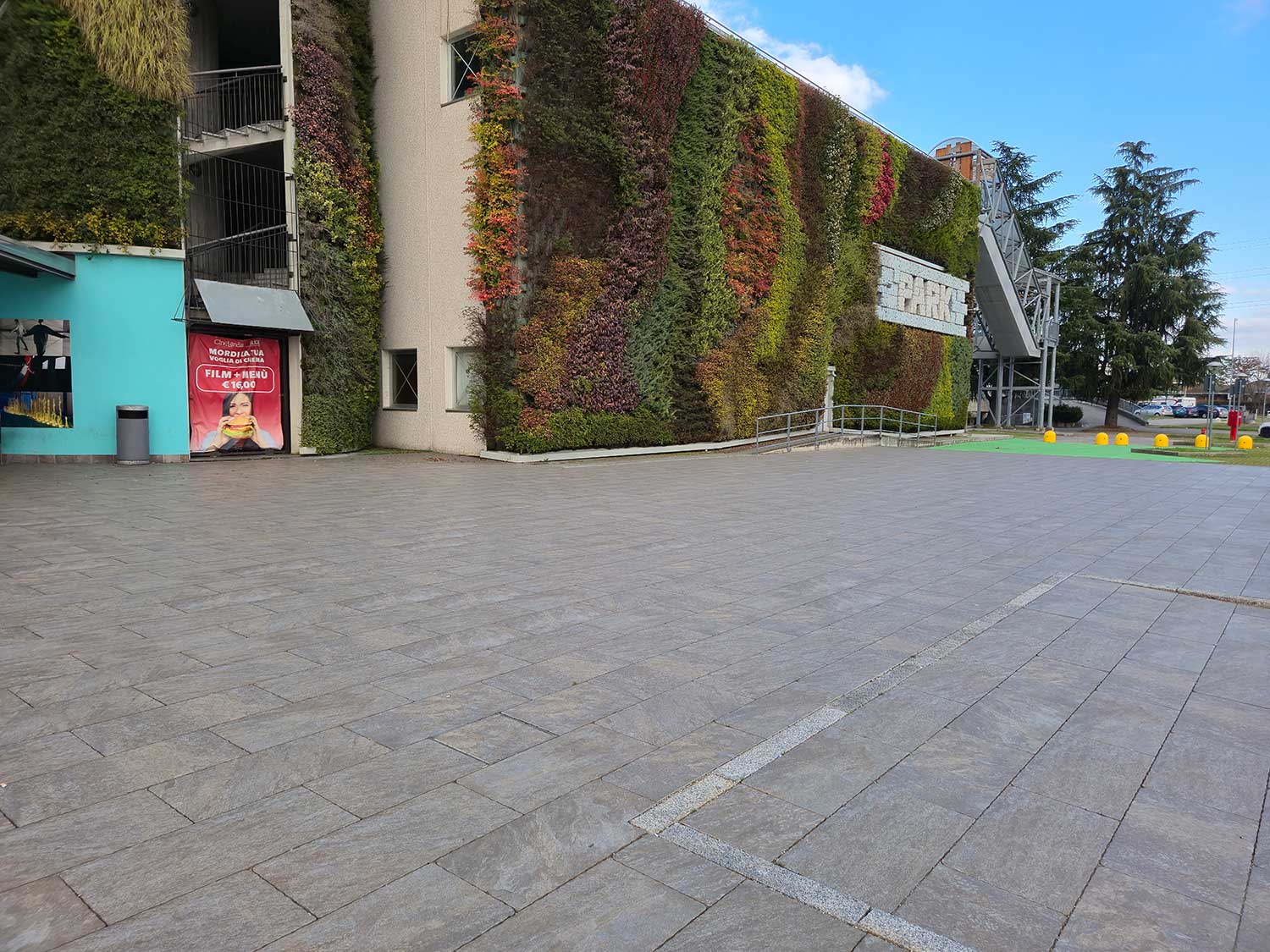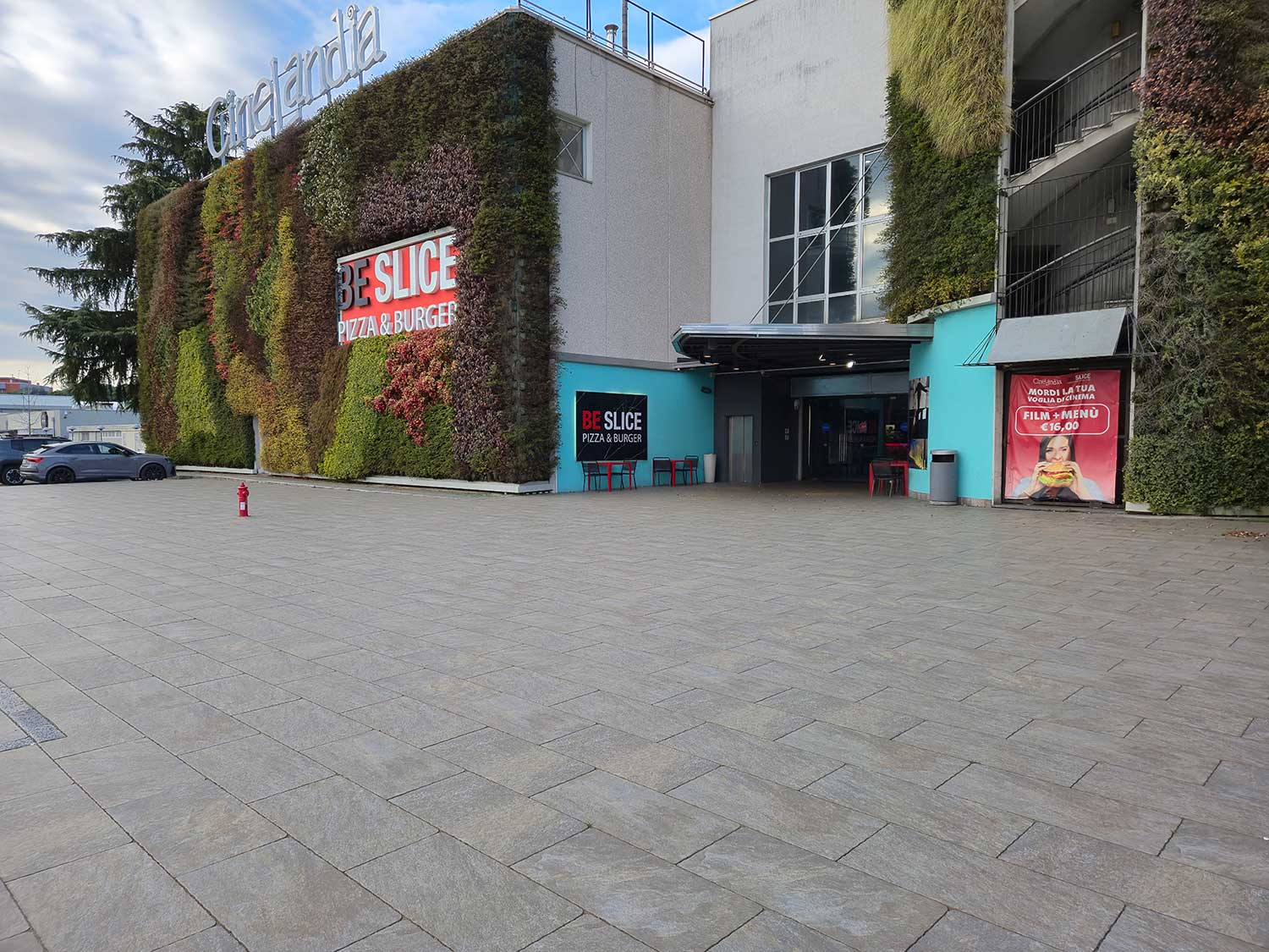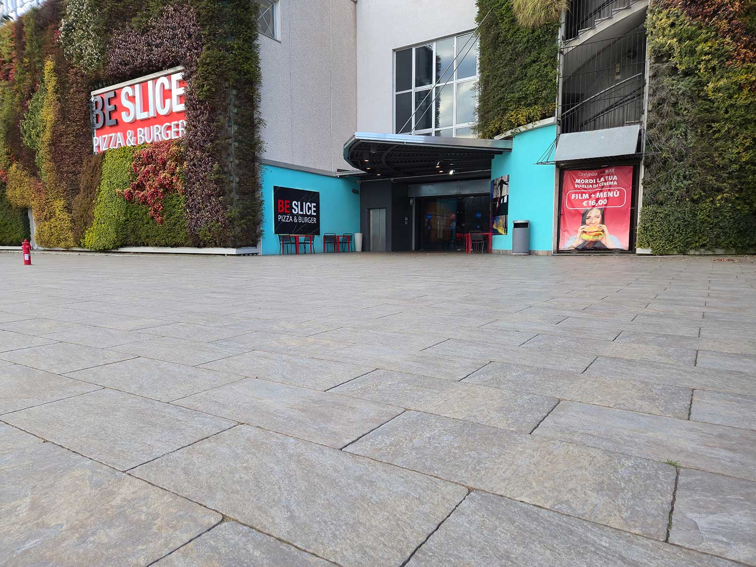 Nel 2024, nell’area esterna di Cinelandia a Gallarate è stata realizzata una pavimentazione esterna in pietra sinterizzata STONE GRES, finitura ANTICATO Quarzite Mix nel formato 40×80×2 cm.