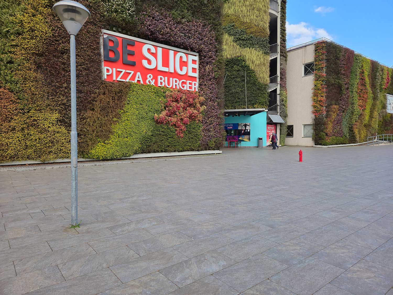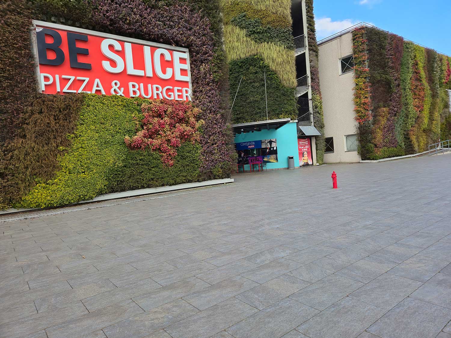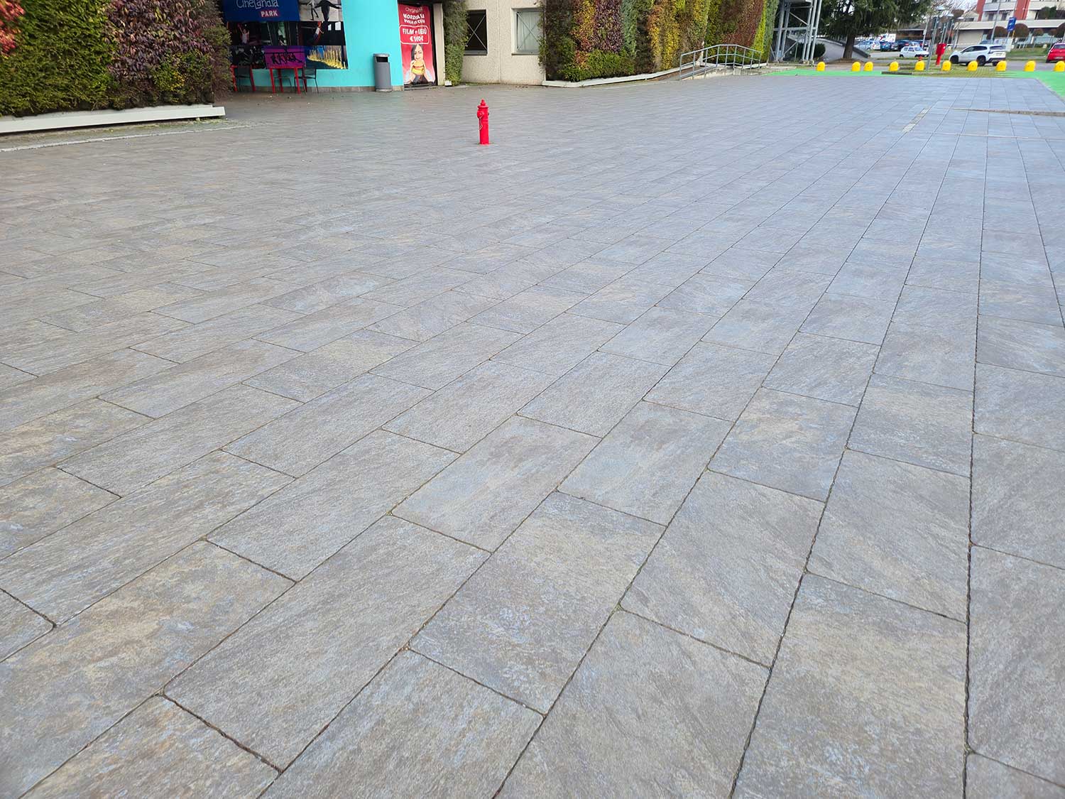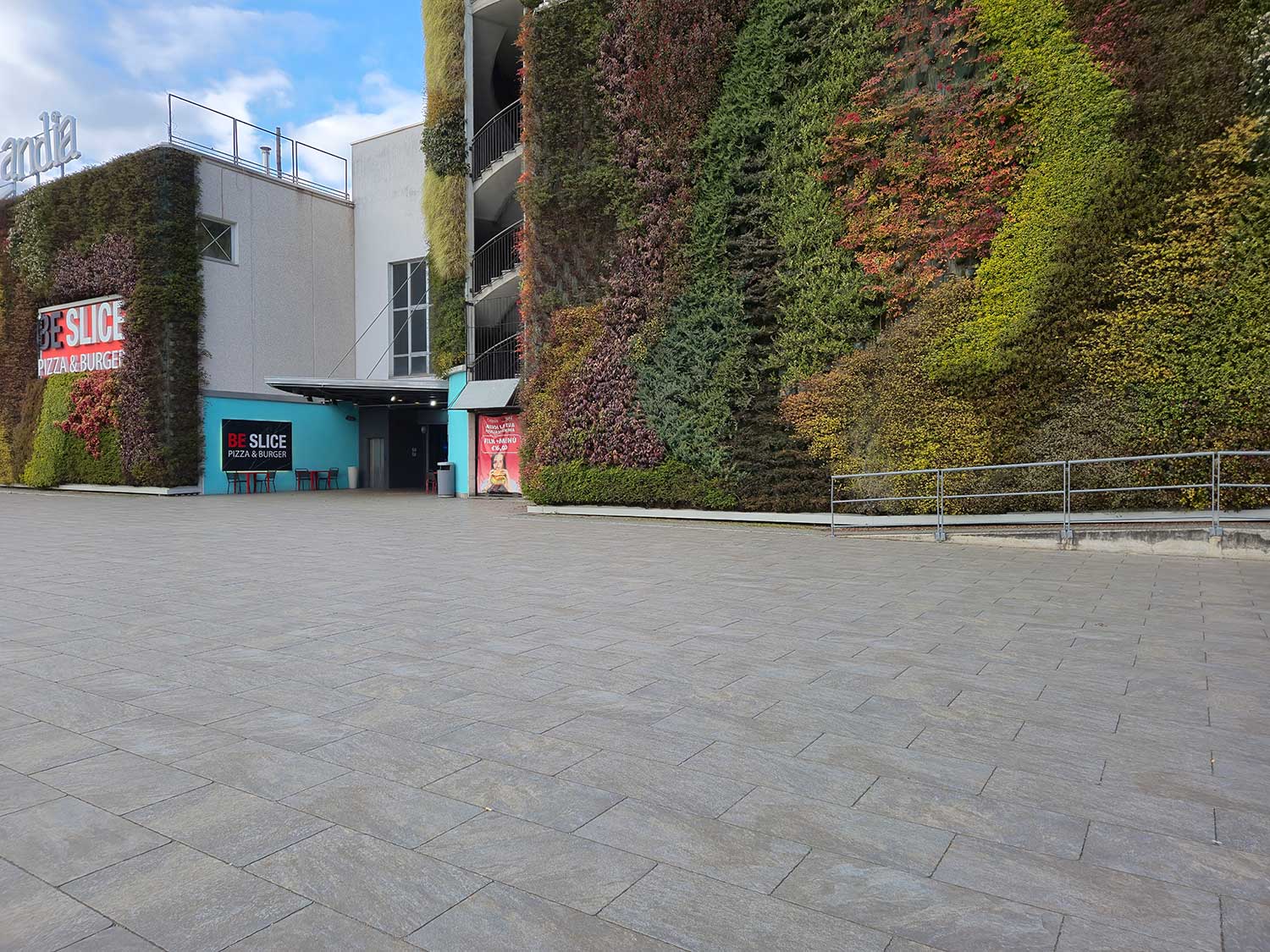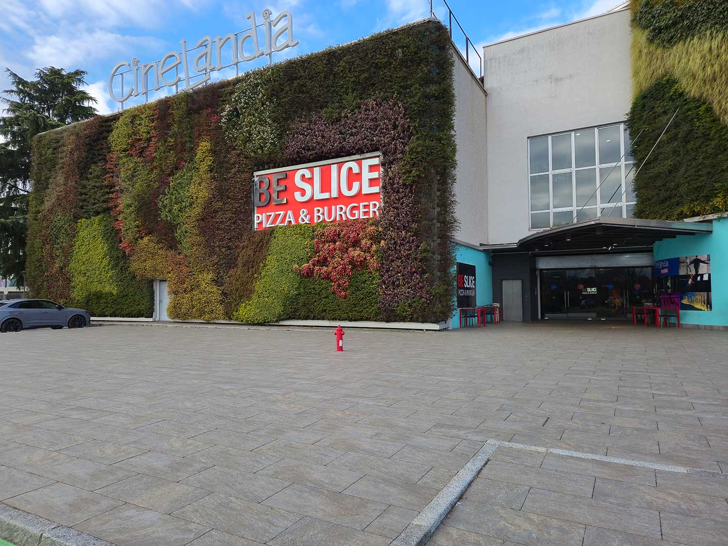 Nel 2024, nell’area esterna di Cinelandia a Gallarate è stata realizzata una pavimentazione esterna in pietra sinterizzata STONE GRES, finitura ANTICATO Quarzite Mix nel formato 40×80×2 cm.