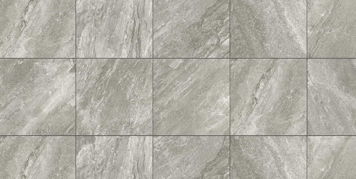 La cromia, un grigio caldo tendente al beige, appare morbida e naturale, arricchita da sfumature sabbia e toni terrosi leggeri. La superficie rivela un disegno fine e omogeneo: leggere velature, sottili venature biancastre e piccoli accenti minerali che creano profondità senza rompere l’equilibrio visivo.