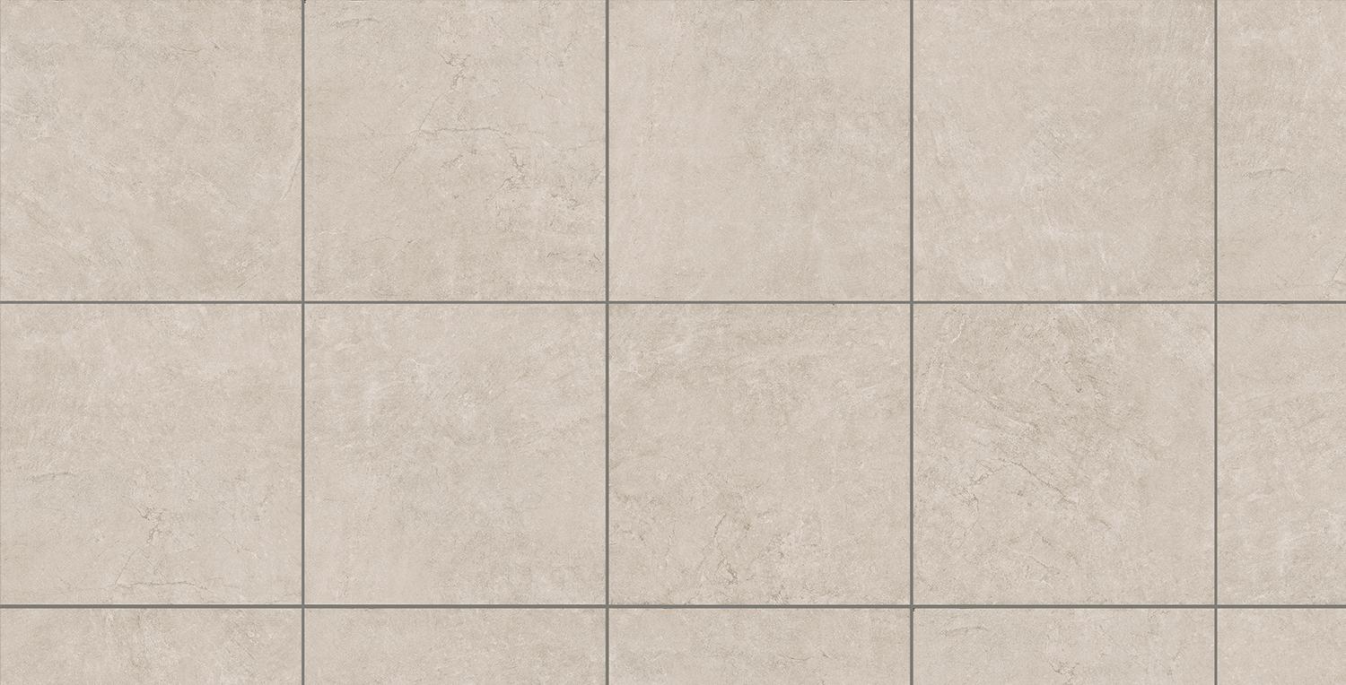 La texture è delicatamente mossa, costruita attraverso micro-variazioni e un effetto leggermente nuvolato che richiama la morbidezza visiva delle pietre calcaree. Non esiste una direzione grafica dominante: la superficie appare continua, uniforme ma mai piatta, con una profondità controllata che valorizza la luce naturale.